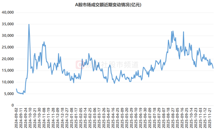注:A股市场成交额近期变动情况(截至11月28日收盘)