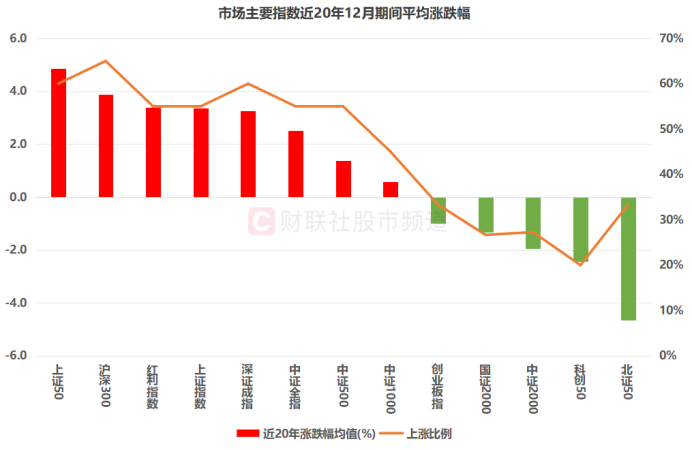 注:市场主要指数近20年12月期间平均涨跌幅