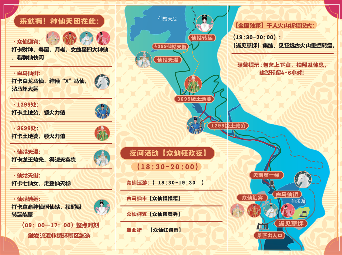白水寨景区“寻仙转运 马上会火”主题活动持续至2月22日(正月初六),所有精彩项目不打折、不缩水:神仙天团照常互动、非遗展演天天上演、仙瀑灯光秀每晚绽放,福气、喜气、人气全程在线,让每一位游客乘兴而来、满载而归。