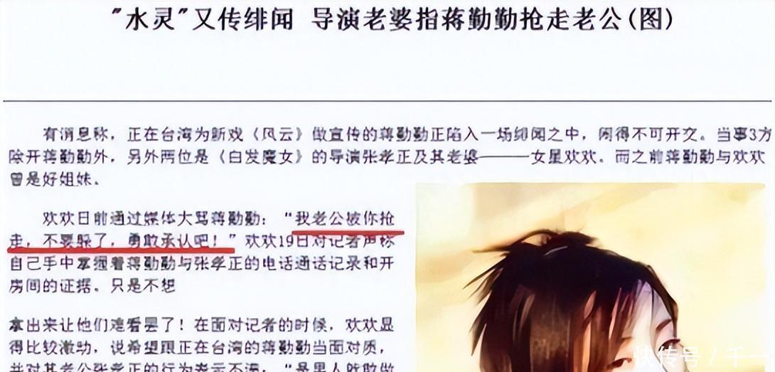 但是看着张孝正一次次的道歉,为了年幼的孩子,于佳卉也一次次的选择原谅。出轨八次但是于佳卉的隐忍换来的却是张孝正的变本加厉,在一次电视剧《白发魔女》的拍摄中。张孝正是该片的指导,女主是蒋勤勤,那时候于佳卉还热情的让蒋勤勤到家里做客。